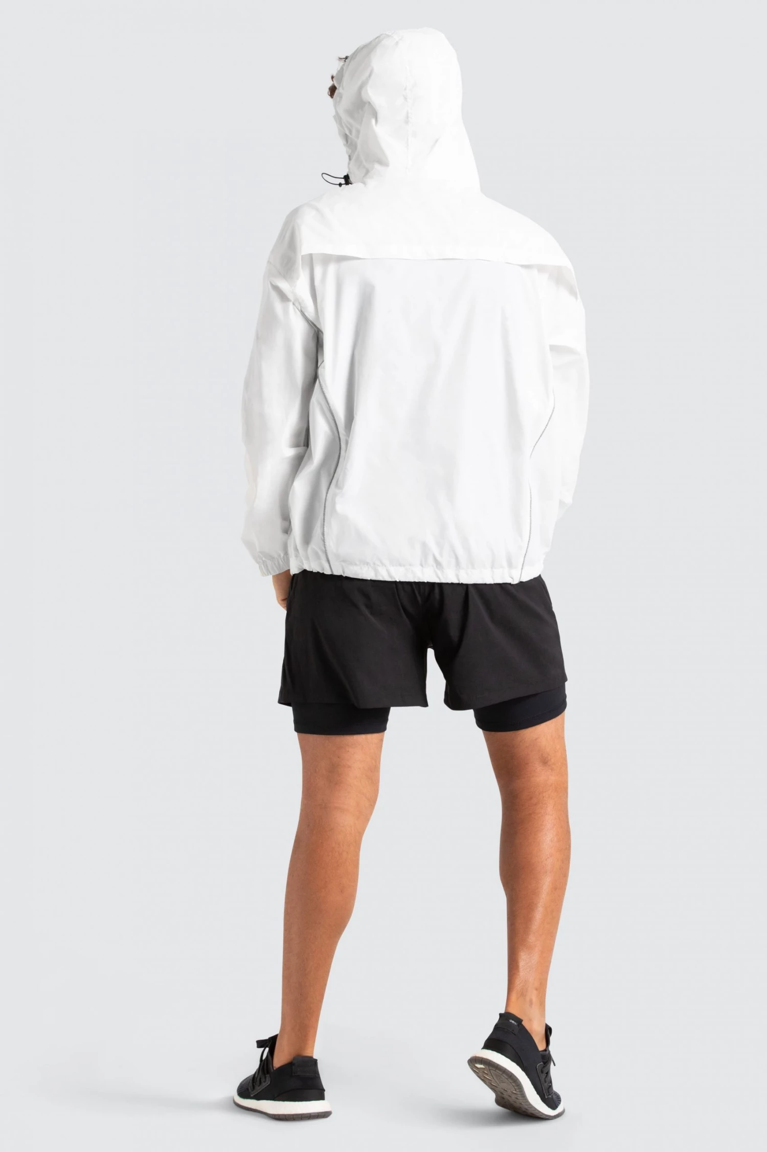 Model is 6″0 and wears a Large Marked Running Jacket.